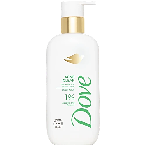 Another body breakout? Meet Dove Acne Clear Serum Body Wash Co-created with dermatologists, and made with 1% Salicylic Acid Formula, our refreshing gel serum body wash transforms into bubbly lather with fresh and herbal scents to treat body acne. Foam up to deeply cleanse skin, purify pores, and prevent acne breakouts. This Acne body wash brings expert care to your shower routine by infusing the active ingredients you already use (and love) in your face care routine.