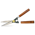 This hedge shear features a wooden handle for comfortable grip and a rust-preventive top coat for durability. It's designed for efficient grass cutting and hedge trimming.