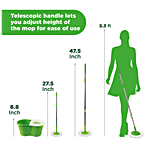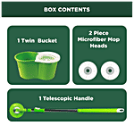 Scotch Brite Twin Bucket Spin Mop - Plastic, With Rod, Refill Included, Green, 1 pc