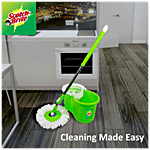 Scotch Brite Twin Bucket Spin Mop - Plastic, With Rod, Refill Included, Green
