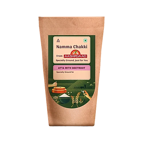 Aashirvaad Namma Chakki Atta with Beetroot combines the wholesome goodness of whole wheat with the natural nutrition of beetroot. Milled using traditional chakki grinding, it retains essential nutrients and fibre for soft, fluffy rotis with a mild, earthy sweetness. The beetroot adds a natural pink hue and richness in iron and antioxidants, promoting a healthy diet. Perfect for those who value taste and wellness, this atta brings a nutritious twist to everyday meals for the entire family.