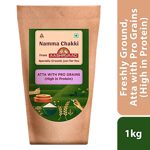 Namma Chakki from Aashirvaad brings specially ground Atta with Pro Grains - High in Protein to your doorstep. Are you looking for a protein source that is right for your everyday meals? Atta with pro grains contains a high amount of protein and is rich in fibre, a low glycemic index, ensuring a fit and active lifestyle. When a high-protein meal is all you need, you don't have to look anywhere else! Pair your meals with rotis that are rich in fibre, protein and experience nutrition in each bite. It is also recommended for people with diabetes due to its low GI (Glycemic Index) content.