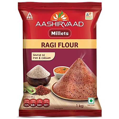 Discover the exceptional quality and unparalleled nutrition of Aashirvaad Nature's Superfoods Ragi Flour. Expertly sourced from the finest ragi grains and carefully processed, this naturally gluten-free flour is a true delight for your senses and your health. Known for its numerous benefits, ragi has been a cherished part of Indian cuisine for thousands of years, and this flour allows you to incorporate its goodness into a range of mouth-watering dishes. Packed with dietary fibre to aid digestion, protein for essential nutrients, calcium to support bone health, and iron to promote haemoglobin formation, this versatile flour is a must-have in every kitchen. Whether you use it to make delectable rotis, dosas, idlis, or porridge, Aashirvaad Ragi Flour will add a delicious and nutritious twist to your meals. Hygienically packed to ensure maximum freshness and quality, this flour is the perfect choice for health-conscious consumers who demand the best of both flavour and nutrition.