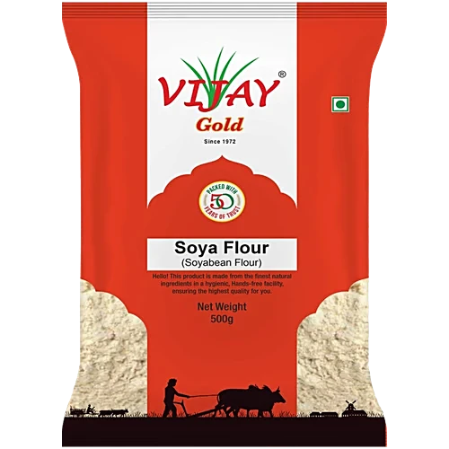 Vijay Soyabean Flour is made from carefully roasted soyabeans, ground into a fine, nutritious powder. Crafted from the finest natural ingredients in a hygienic, hands-free facility, it guarantees exceptional quality and purity. Rich in protein and essential nutrients, this versatile flour is perfect for enhancing the nutrition of your everyday meals.