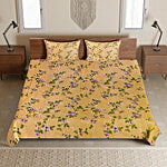 Sarangi Creations King Size Bedsheet With 2 Pillow Covers Cotton 120 TC - Floral Design, Yellow, 1 Set is backordered and will ship as soon as it is back in stock.