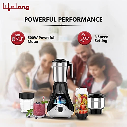 Lifelong mixer has everything from a beautiful and aesthetic exterior to a powerful system with unbreakable jars and a performance that outweighs any other mixer. This durable multi-purpose mixer grinder, equipped with three stainless steel jars is a true kitchen companion.