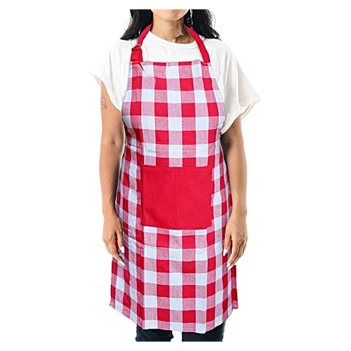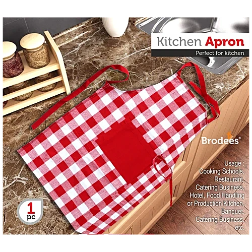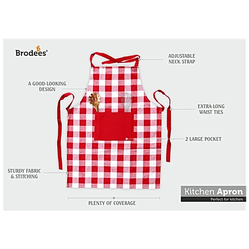 Brodees Cotton Red Check Kitchen Aprons with Front Center Pocket is made from high-quality cotton material. Apron with adjustable size to tie back, easy to wear and very lightweight. This apron comes with a deep front pocket that can be used to hold recipes, kitchen tools and personal accessories. Add a professional style of cooking and enjoy the action without worrying about soaking.