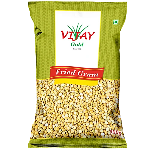 Indulge in the rich, crunchy delight of Vijay Gold Fried Gram, a versatile and nutritious ingredient that adds a satisfying texture and burst of flavour to a wide variety of dishes. Crafted from high-quality chickpeas (chana dal) that are carefully roasted to perfection, these golden-brown fried gram kernels offer a delightful crunch and a delectable nutty taste. Packed with plant-based protein and fibre, Vijay Fried Gram is a wholesome addition to your daily nutrition, making it an ideal snack or a flavourful topping to elevate your meals. Experience the perfect blend of taste and quality, with Vijay's commitment to hygienic and mechanised processing, ensuring the highest standards of food safety and hygiene.