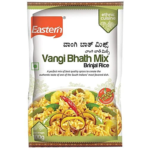 Eastern Vangi Bhath Mix is a perfect blend of high-quality spices that creates the authentic taste of one of the most favoured South Indian dishes - Vangi Bhath (Brinjal Rice). This ready-to-cook mix makes it easy to prepare the delicious Vangi Bhath at home. The mix contains a carefully curated selection of spices like coriander, chilli, urid dhal, Kashmiri chilli, cumin, fenugreek, cinnamon and clove that come together to deliver the perfect flavour.
