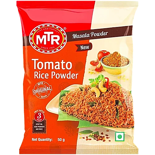 Elevate your culinary experience with MTR's Tomato Rice Powder, a versatile seasoning that adds a burst of flavour to your favourite dishes. Crafted with the finest tomatoes and a blend of aromatic Indian spices, this powder effortlessly transforms simple meals into gourmet delights. Whether you're cooking rice, vermicelli, or poha, a sprinkle of this powder will infuse your dish with a rich, tangy tomato taste and a zesty kick that will impress your family and friends. Convenient and easy to use, the 50g pack makes it a must-have in your kitchen pantry. Enjoy the authentic Indian flavour and the versatility of this seasoning, which can be used in a variety of dishes, from traditional recipes to fusion cuisine. Sourced from the best farms, the tomatoes in this powder ensure the freshest and most flavourful ingredients, while the absence of artificial additives makes it a healthy choice. Elevate your culinary skills and create mouthwatering meals with the help of MTR's Tomato Rice Powder.